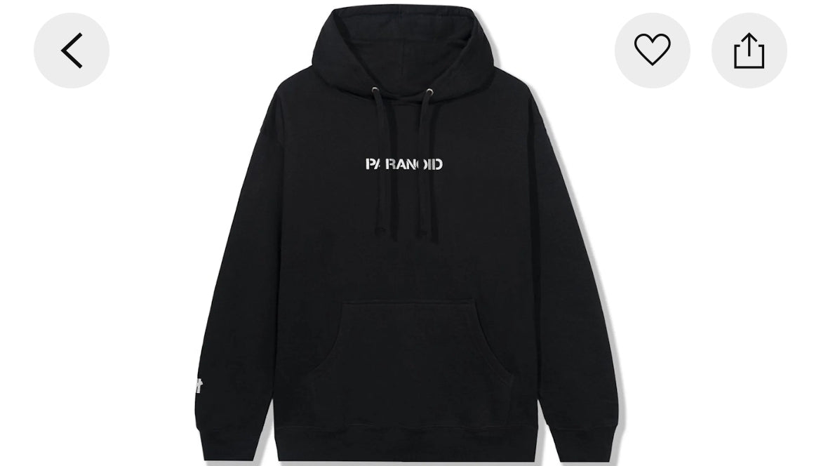 Product form ASSC black paranoid hoodie $120.00 Size Size chart XL Quantity Out of stock Guaranteed secure & safe checkout.