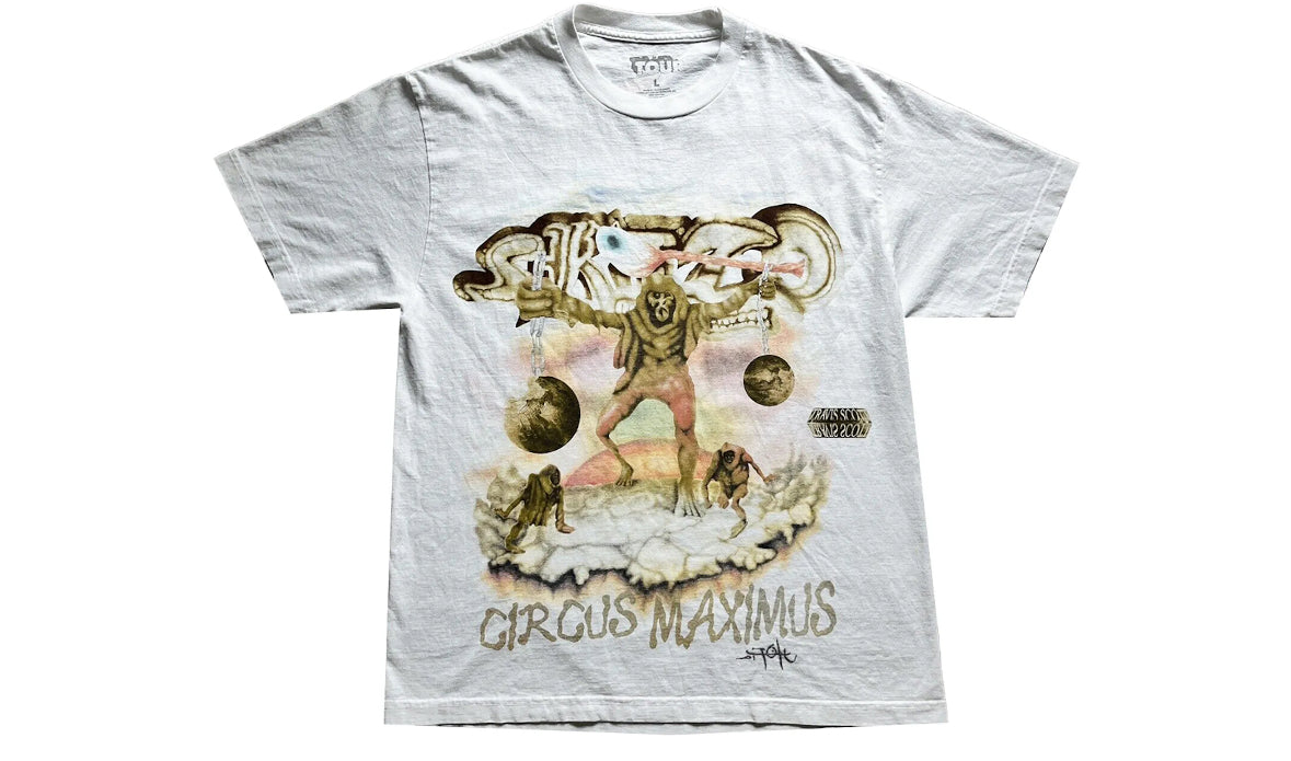 Product form Travis Scott utopia tour skitzo circus $90.00 Size Size chart M Quantity Out of stock Guaranteed secure & safe checkout.
